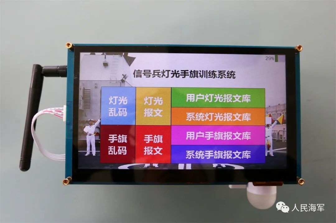 ▲冯雪锋和战友利用发明的训练系统进行灯光训练