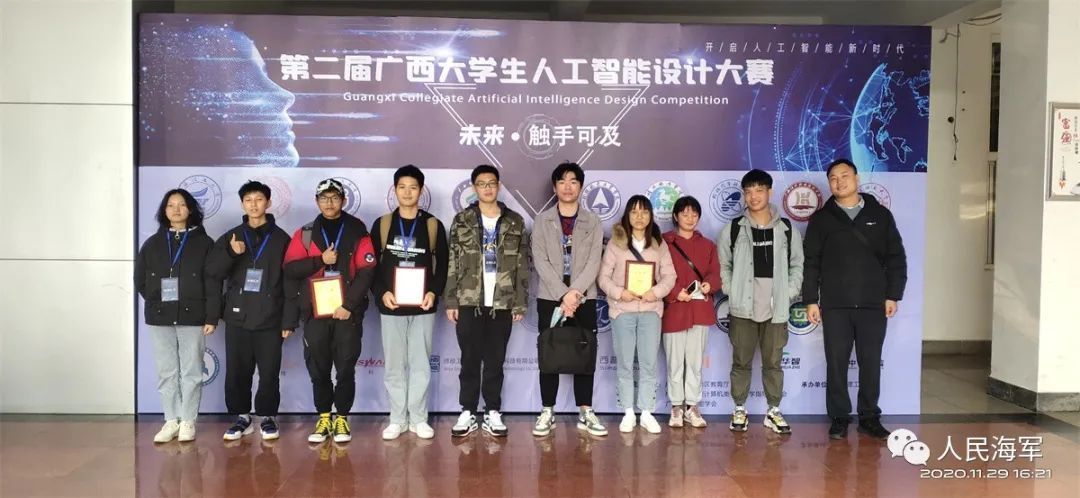 ▲冯雪锋参加第二届广西大学生人工智能设计大赛(左4)