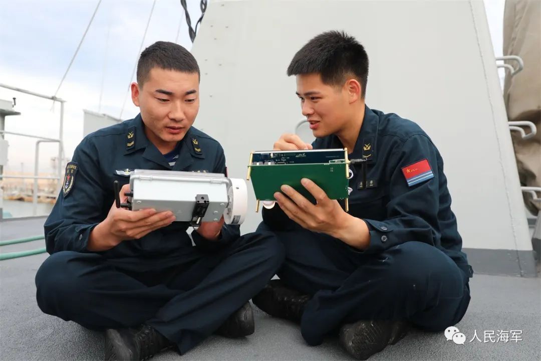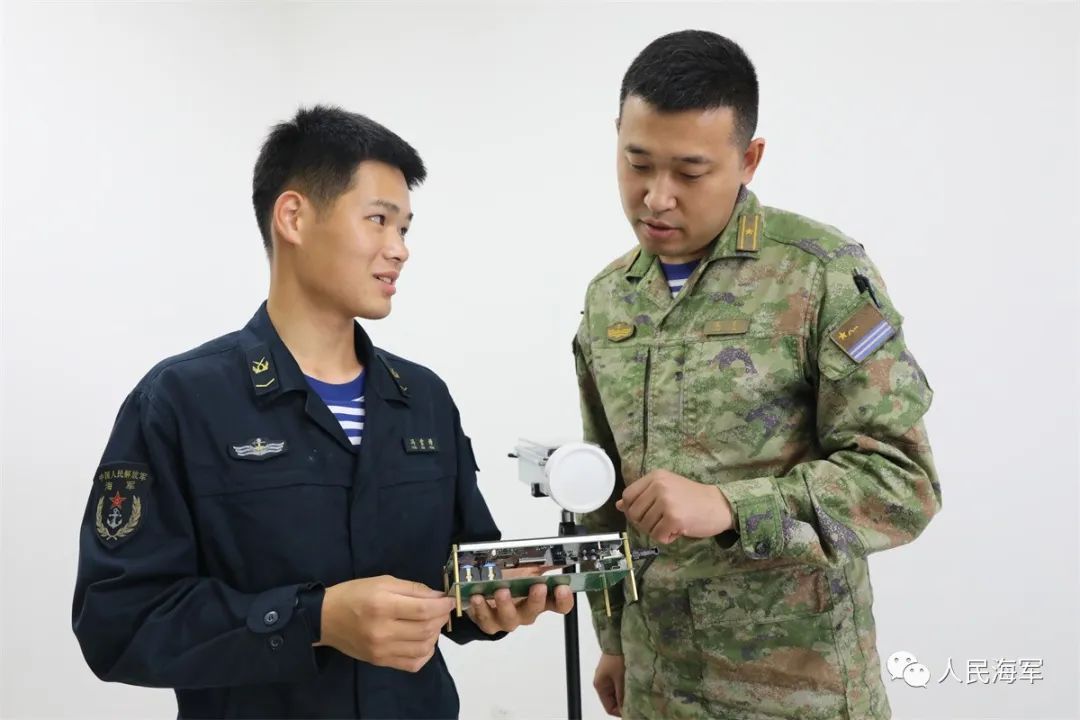 ▲信号班长和冯雪锋讨论训练系统存在的问题