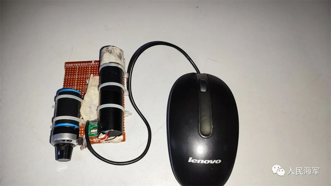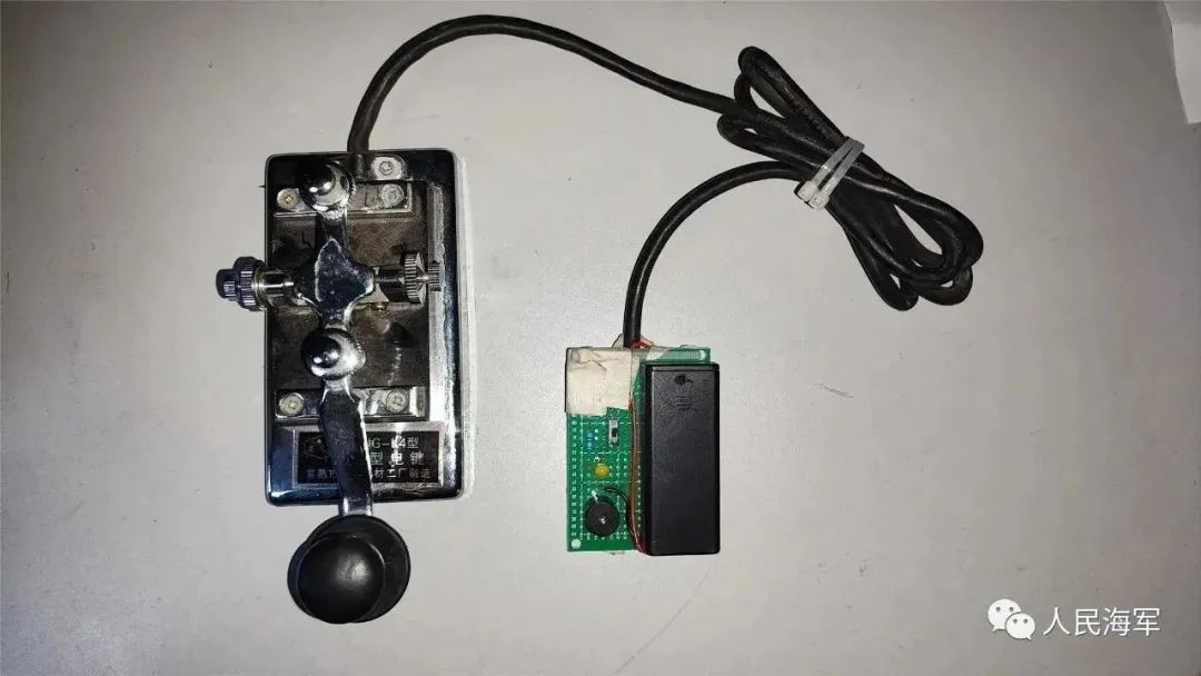 ▲利用废旧小手电和鼠标改造的手动拍发训练小灯