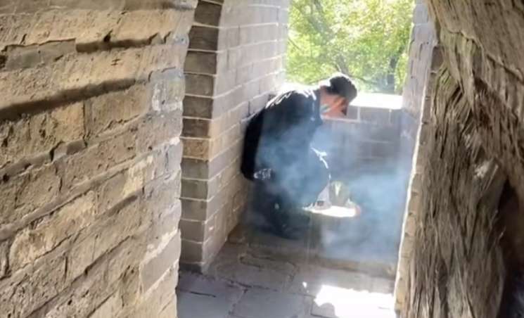 八达岭长城保安抽烟被曝光 景区:确定开除