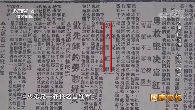 △1934年5月的《红色中华》报刊发了《八弟兄一齐报名当红军》的感人事迹