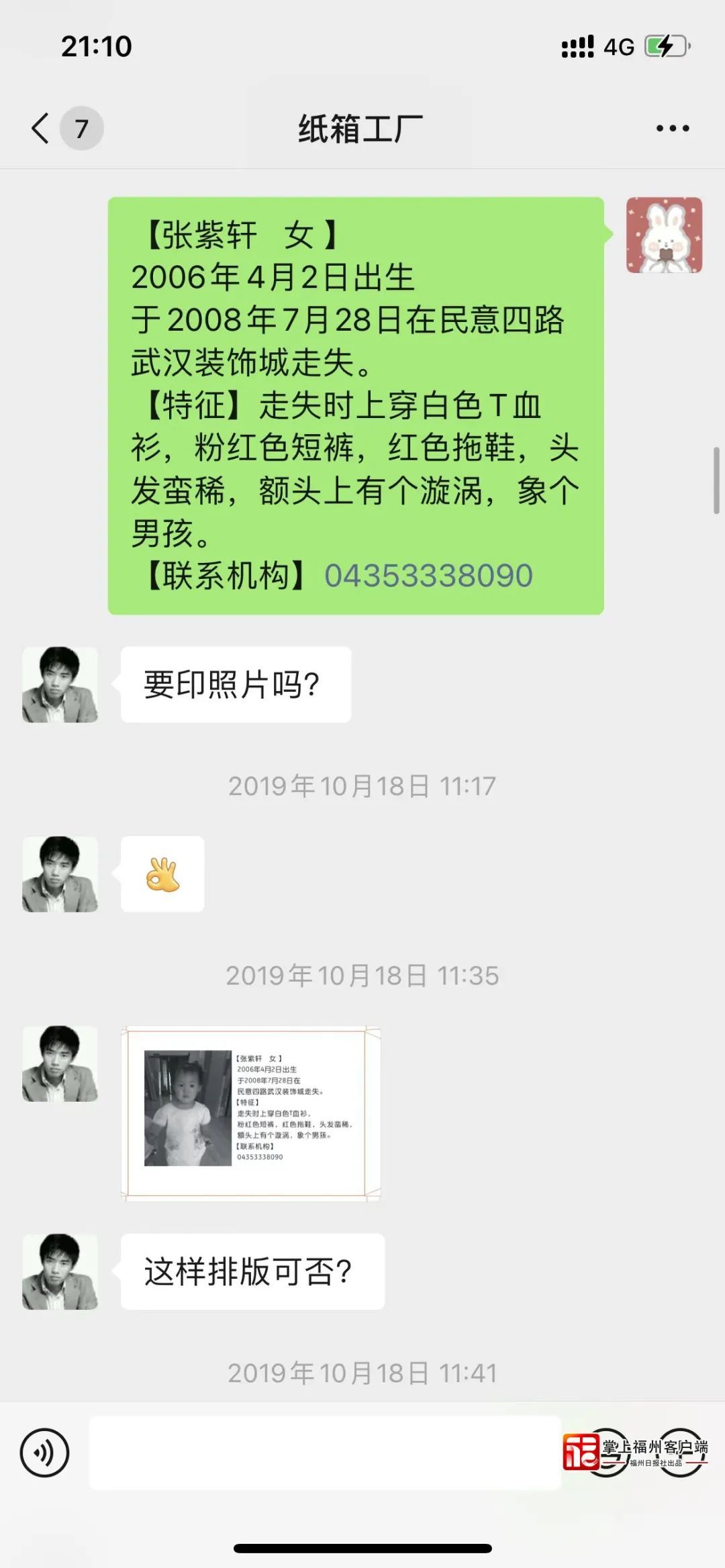 像往常一样拆开快递,准备丢盒子的时候,却发现包装里面印着一张小孩子的照片,仔细一看原来是走失儿童的寻人启事。