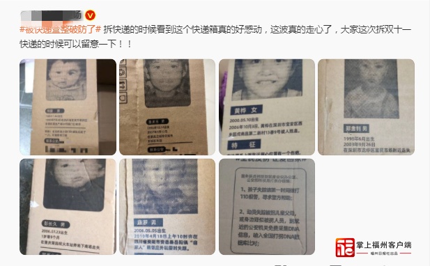 20多万个印有走失儿童图片信息的快递盒