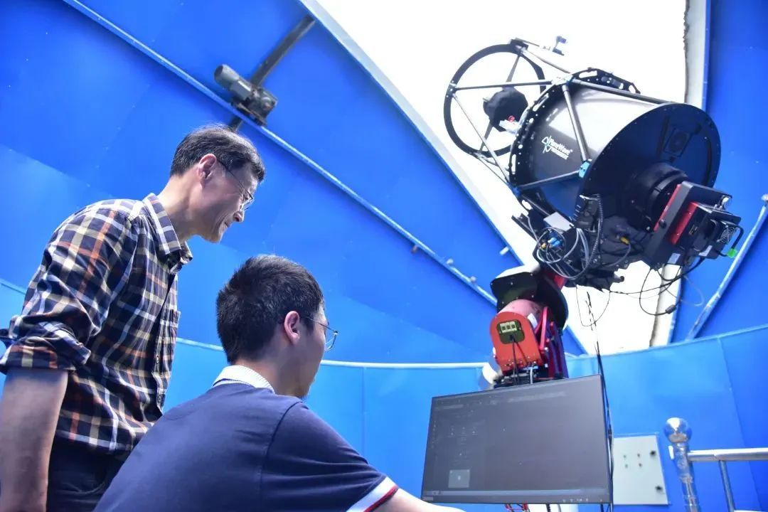卢燎亚老师指导朱毅轩同学开展天文观测。