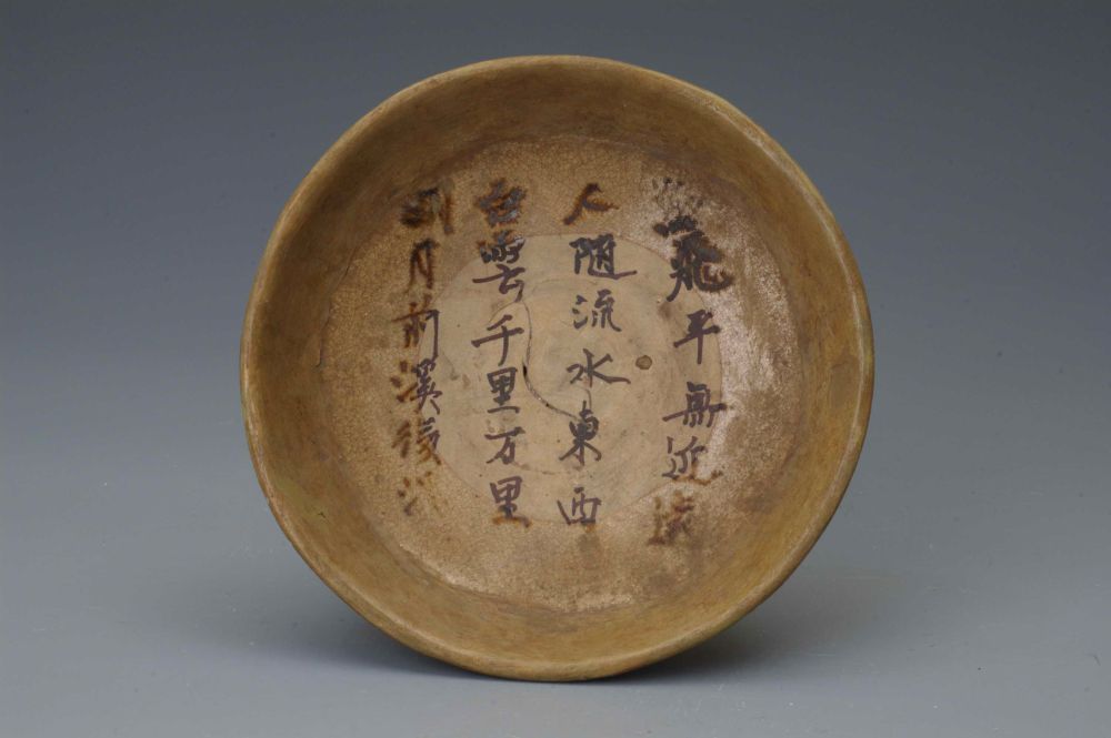 青釉褐彩“鸟飞平无近远”诗文瓷盘。长沙博物馆供图