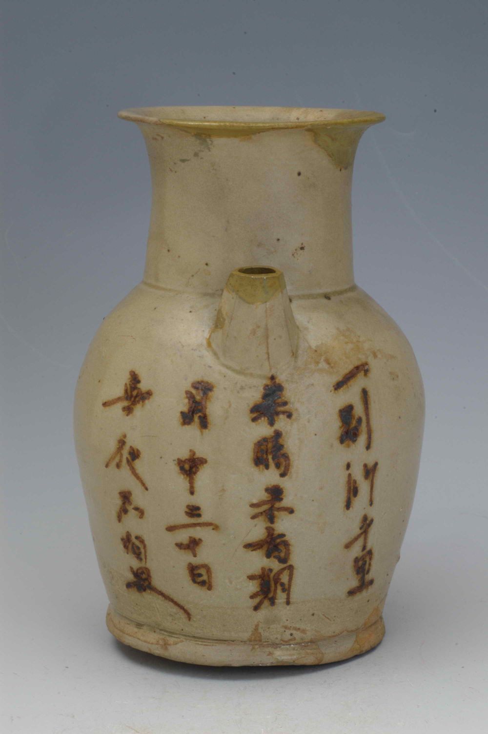青釉褐彩“岁岁长为客”诗文壶。长沙博物馆供图
