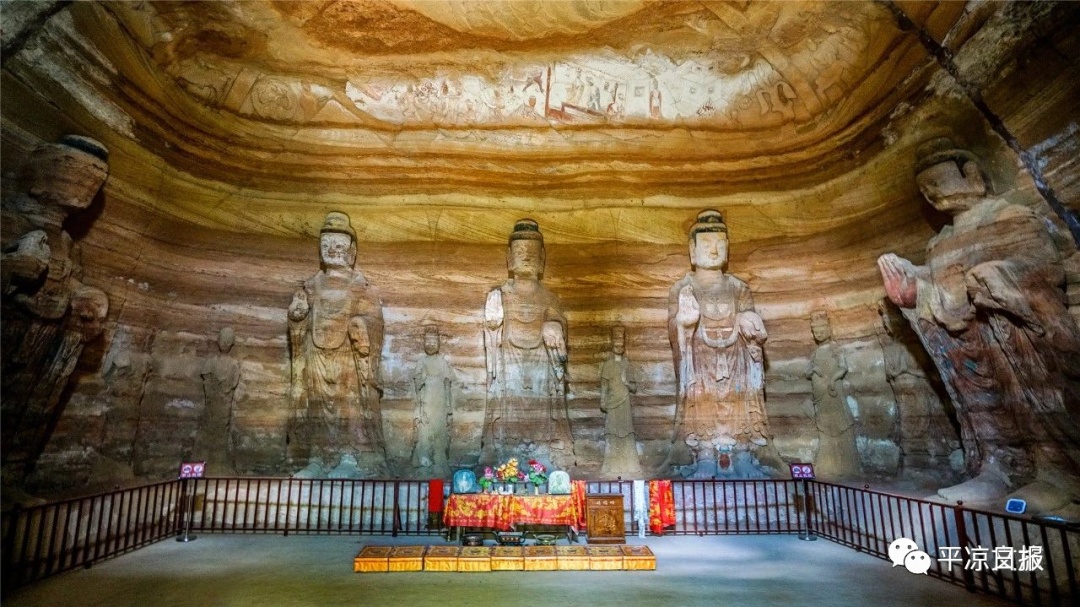 始凿于北魏永平三年的南石窟寺与庆阳北石窟寺并称“陇上石窟双明珠”。以南石窟为中心,沿泾河两岸的石窟群、石窟龛形成了国内罕见的百里石窟长廊。