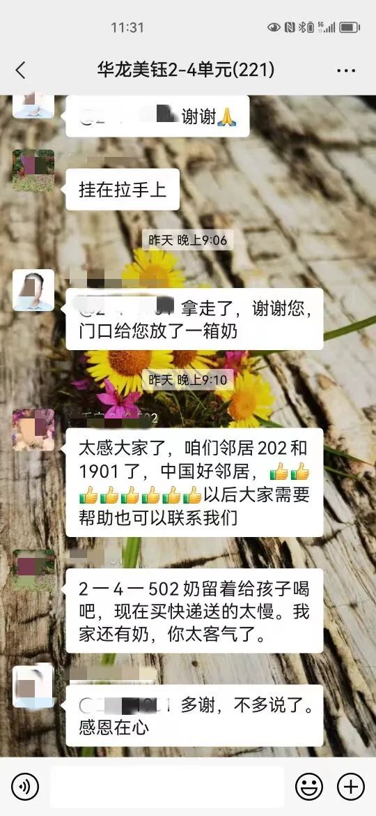 白纸坊街道万博苑社区华龙美钰小区的刘先生家小孩发烧急需药品,在网格群中发布了“求药”消息,并表示可以付费购买。“我家里有富余的,可以免费分享,我挂在门把手上,您过来取吧。”住在同楼的宫先生看到消息后,第一时间在群里进行了回复,并表示大家都是邻居,互帮互助是应该的。“药取走了,谢谢您,门口给您放了一箱奶。”刘先生在群里回复。