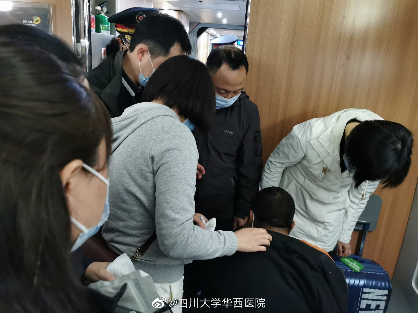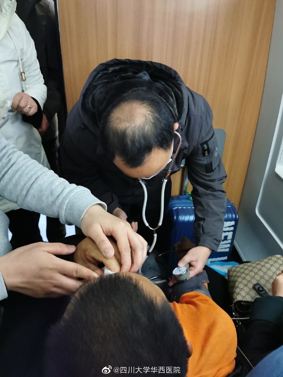而此刻,动车上正好有来自四川大学华西医院的55名医护人员。和列车员确定旅客的主要症状后,耳鼻咽喉头颈外科副主任邹剑、老年医学中心副主任黄晓丽、心脏内科李江波、重症医学科周永芳、麻醉手术中心张伟义五人组成了临时医疗小组迅速赶往发病旅客所在车厢。