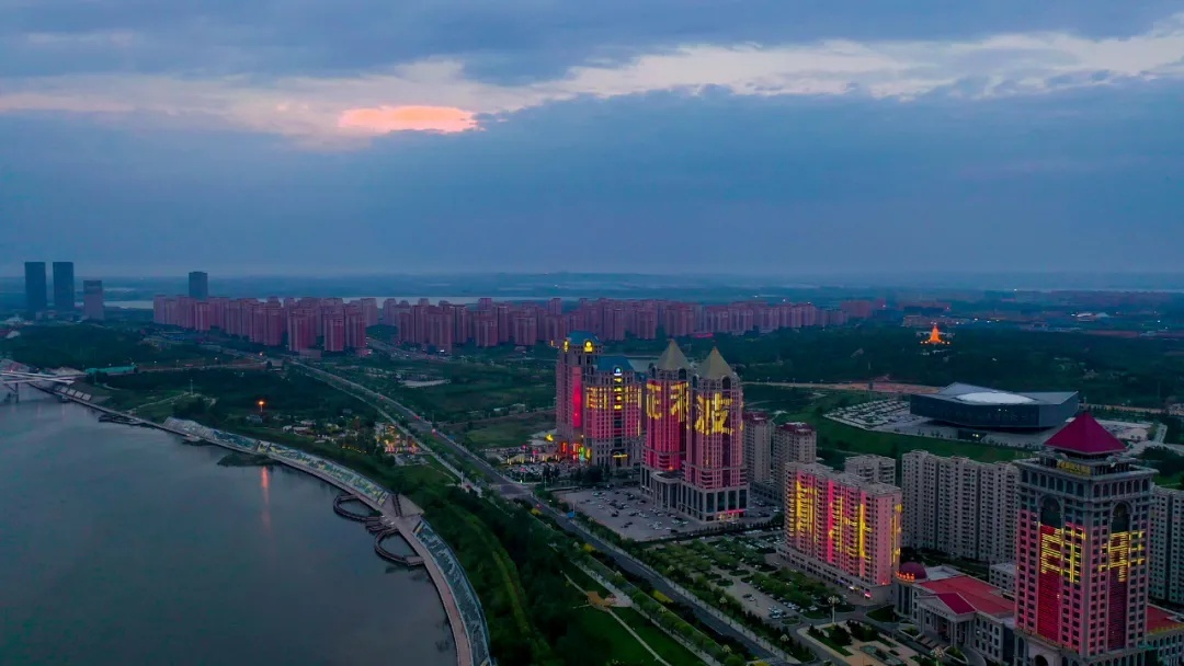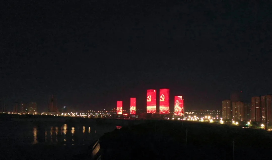 晚上8时许,乌兰木伦湖沿岸3公里22栋楼的外立面披上了灿烂的 “红装 ”,“热烈庆祝中国共产党成立100周年”的字样显现出来,倒映在乌兰木伦湖面,寂静的湖面与绚烂的灯光交织出一幅幅精美的画卷,流光溢彩、惊艳高燃。
