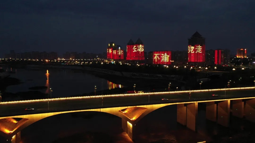伊金霍洛旗上演庆祝建党百年主题灯光秀