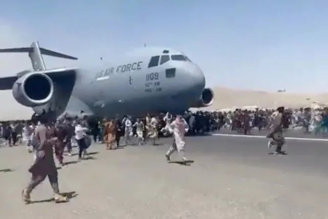 16日,美军C-17运输机引发了更多的混乱,有视频显示数千名阿富汗人在飞机起飞前沿着跑道拼命追赶,一些人爬上机身的起落架等位置。有视频显示,在飞机起飞后至少有两人从机身上掉落身亡。