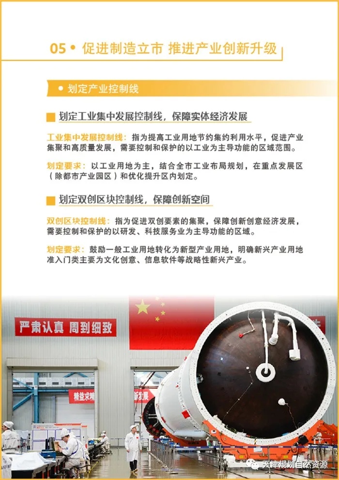引导制造业布局优化,向园区集中。引导传统制造业和一般制造业从园区外零散地区、生态地区有序退出,向园区集中,为高附加值的新兴产业腾挪与释放发展空间。推动园区平台整合整治。同时,以工业用地为主划定工业区块控制线,作为工业用地最为集中区域,提高工业用地节约集约利用水平,促进产业集聚和高质量发展。鼓励混合用地供给,划定双创区块控制线,控制和保护以研发、科技服务业为主导功能的区域,促进双创要素集聚,保障创新创意经济发展。
