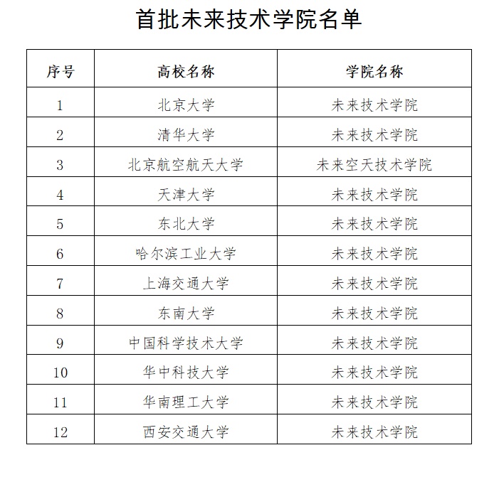 5月26日,教育部办公厅下发通知,正式公布首批未来技术学院名单,12所高校入选。