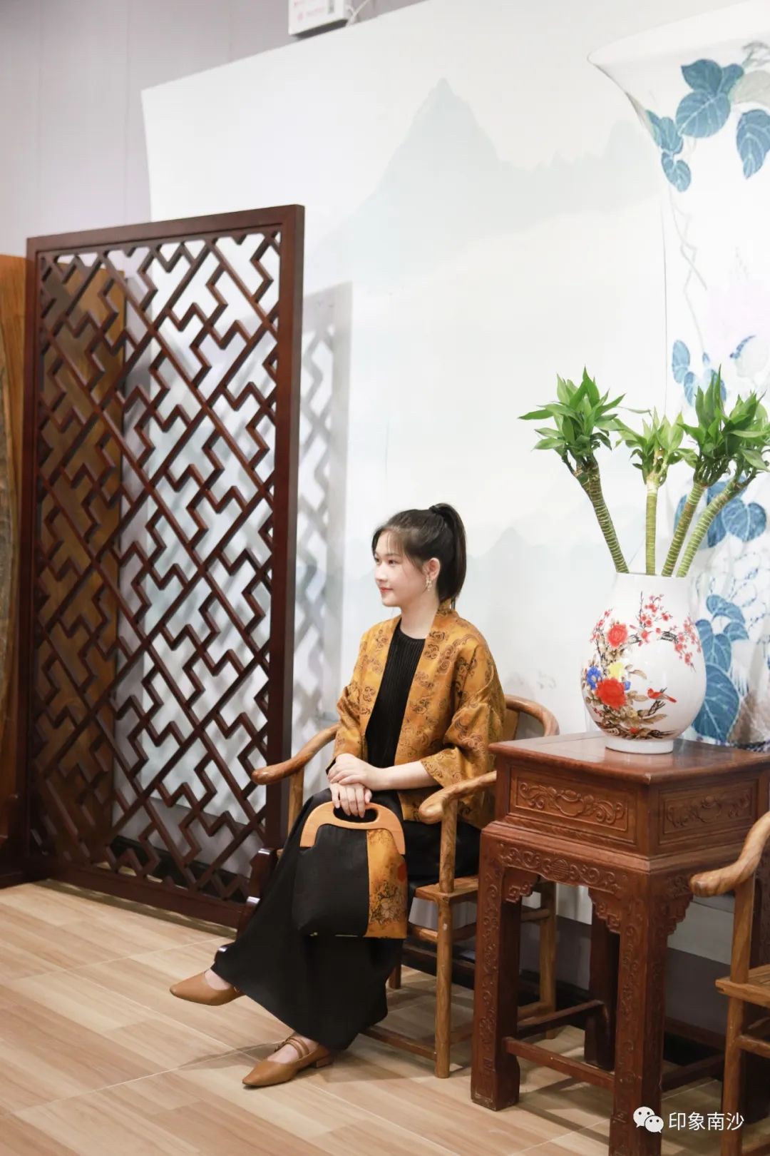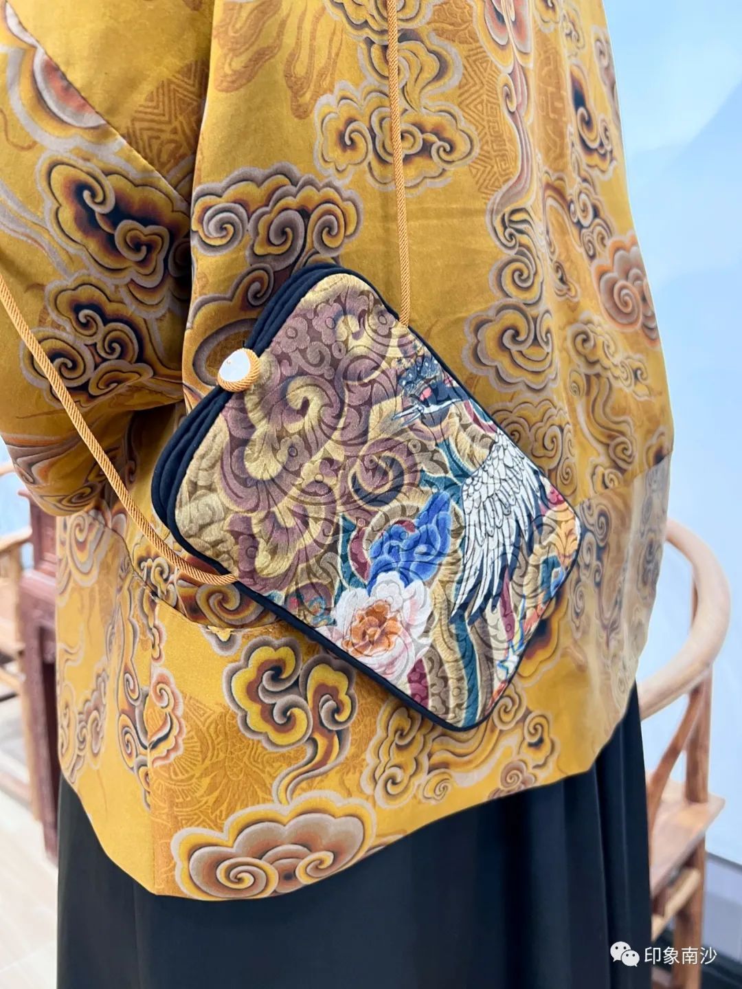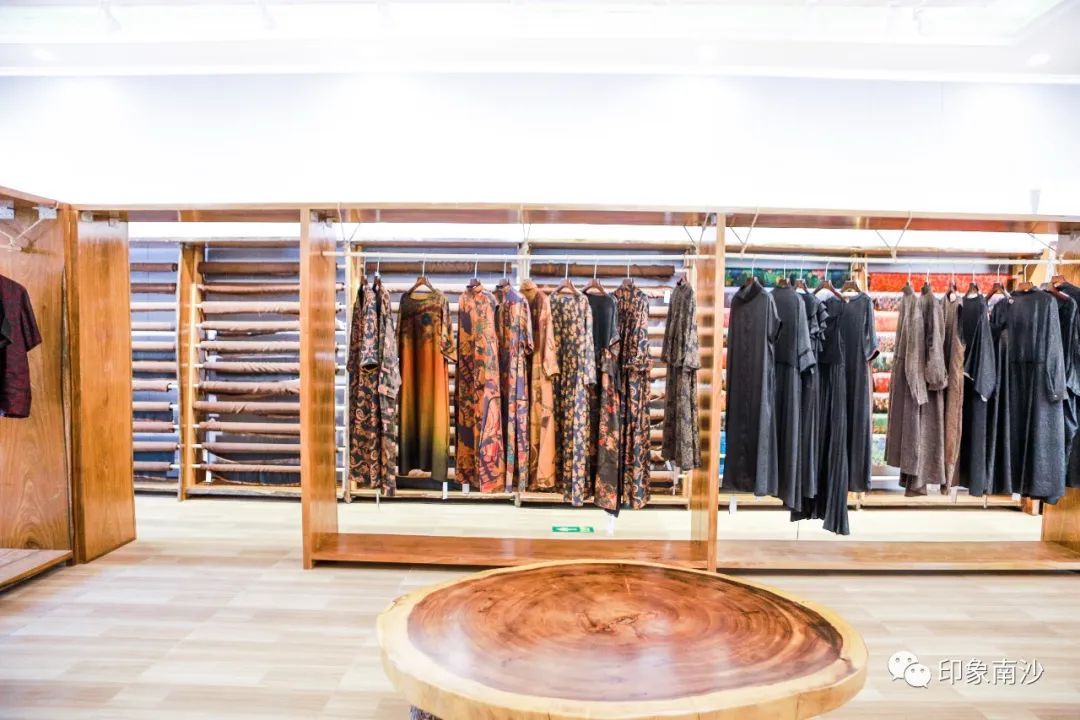 销售中心的右方则主要展示各种香云纱制作而成的小物件,如手袋、丝巾和茶垫,还有结合时下年轻人的通勤习惯推出的手机袋等等。花色精美的祥云印花最让小姐姐爱不释手。