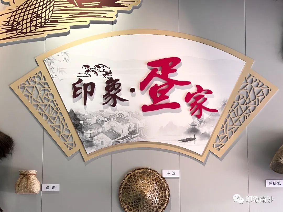 在第一展厅里,通过蓑衣和渔船,我们对疍家人的生活习性有了一定的了解,或许还可以想象水上人家常年居于渔船上的劳作生活。在珠江口的河涌、大海与家之间来回穿梭,勤劳的疍家人因地制宜,逐渐形成了独特的桑基鱼塘、半耕半渔的生态农业模式,开创了具有鲜明特色的疍家文化。