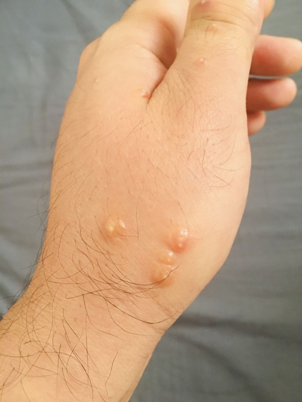 被红火蚁叮咬的手部