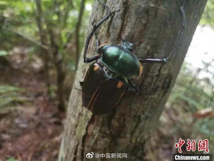 记者28日从贵州印江自治县委宣传部获悉,该县洋溪省级自然保护区内,首次发现国家二级保护动物——阳彩臂金龟,这一物种曾在1982年被宣布灭绝,但近些年又发现了它的踪迹。因该物种雄性的前足长而发达,外形奇特而威武,所以,阳彩臂金龟素有“中国甲虫长臂猿”的美誉。