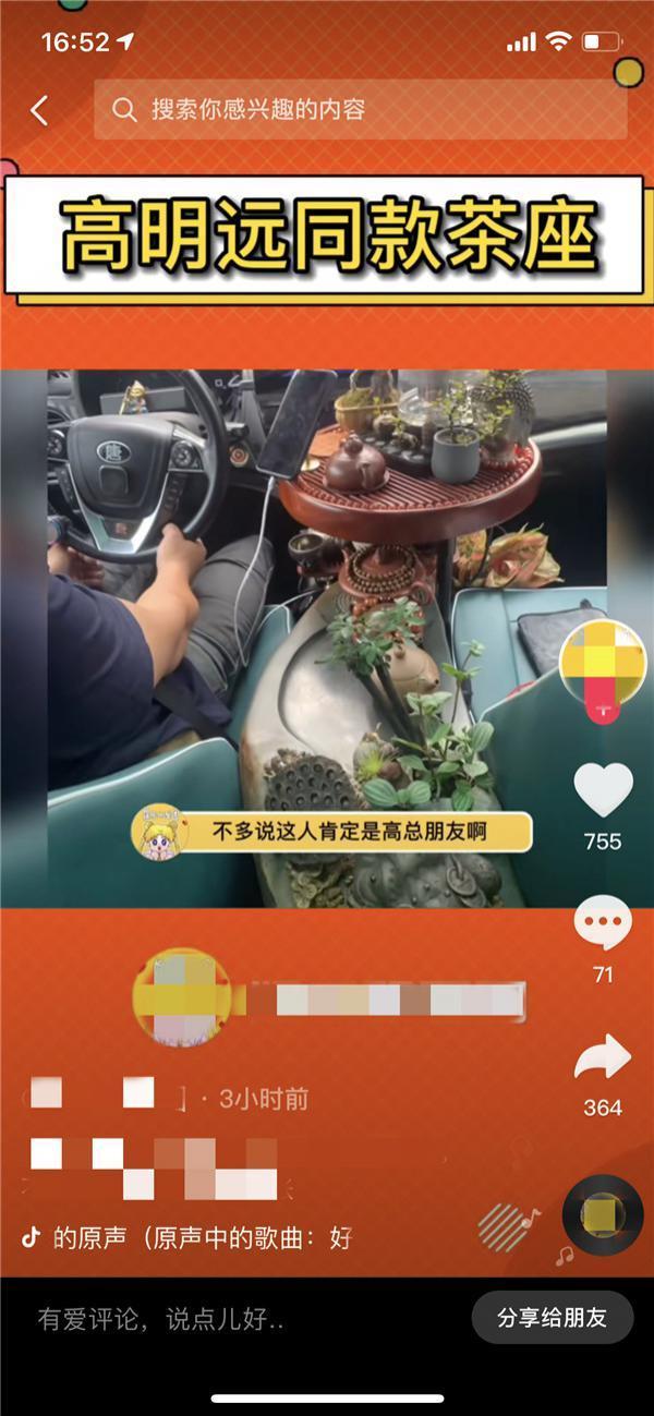 某短视频平台上高明远同款茶台 视频截图