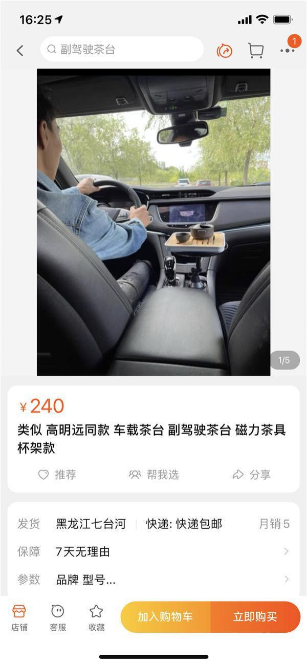 随后,现代快报记者以 " 高明远同款 "" 高明远副驾 "" 高明远茶台 " 等关键词在网络电商平台进行搜索,很容易便搜索到了相似的茶台,价格在 200 元左右。在咨询中,卖家表示这款茶台就是高明远同款,是通过膨胀锁将整个茶台固定在水杯架上,而茶具则是磁力茶具。所谓的磁力茶具就是杯子、茶壶、茶台之间有强磁接触,即使遭遇急刹车也不会滑动。不仅如此,卖家称,茶台的支脚有长短之分,茶盘和茶具的大小也有的选择,可以根据车主的车型进行适配。
