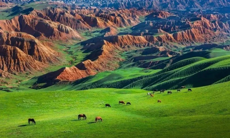 碧草如茵的草原、鬼斧神工的雅丹、气势磅礴的大峡谷、清澈恬静的湖泊……独库公路是一条美丽的地貌走廊。