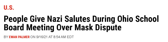 其中,在今年9月,美国一些保守派的家长,为了反对学校要求学生戴口罩上学的政策,竟然还在学校的校董会上对学校人员做出了“敬纳粹军礼”的动作。