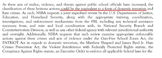 对此,美国全国学校董事会协会(简称NSBA)这个代表着美国众多学校校董会及其成员利益的维权组织,坐不住了。该组织于今年9月29日给美国总统拜登写了一封言辞激烈的信件,呼吁拜登政府管管这些保守派的家长,让他们停止对学校教职员工恶毒的辱骂、骚扰、威胁乃至攻击。
