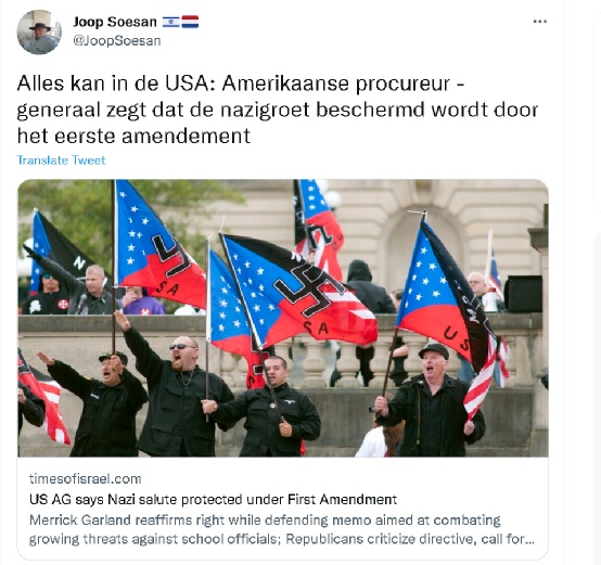 就连一位生活在荷兰的犹太网民在看到这一消息后也被气得吐槽说:在你们美国真是一切皆有可能啊。