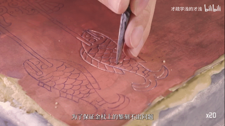 制作金皮,只是复原的第一步。复刻金杖上的纹路,才是最大的挑战。