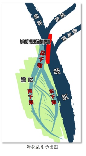 图为:通济堰灌区的辫状渠系示意图。资料照片