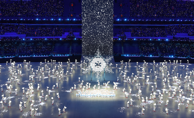 主火炬熄灭的瞬间,张艺谋百感交集。他似乎又看到2008年北京奥运会闭幕时的情景——星光五环伴随《我和你》的主题曲旋律缓缓升起,与唯美的雪花交融。这一刻,象征着2008与2022的时空交错。