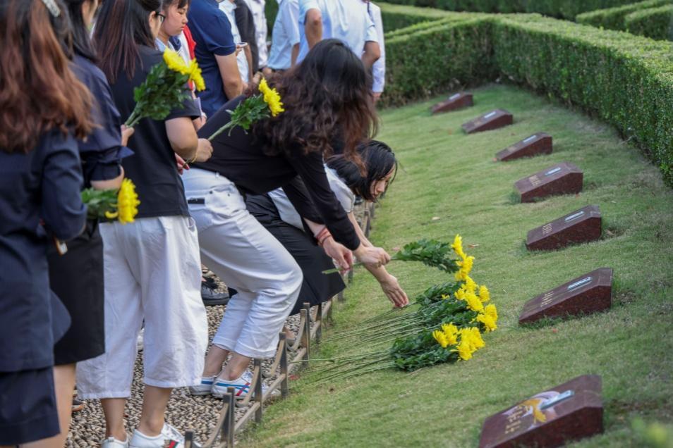 同学们向烈士承诺:“我们不会忘记你们,会永远继续书写以你们为首的诗篇。你披荆斩棘为我们创造的幸福,我们也会珍惜。”