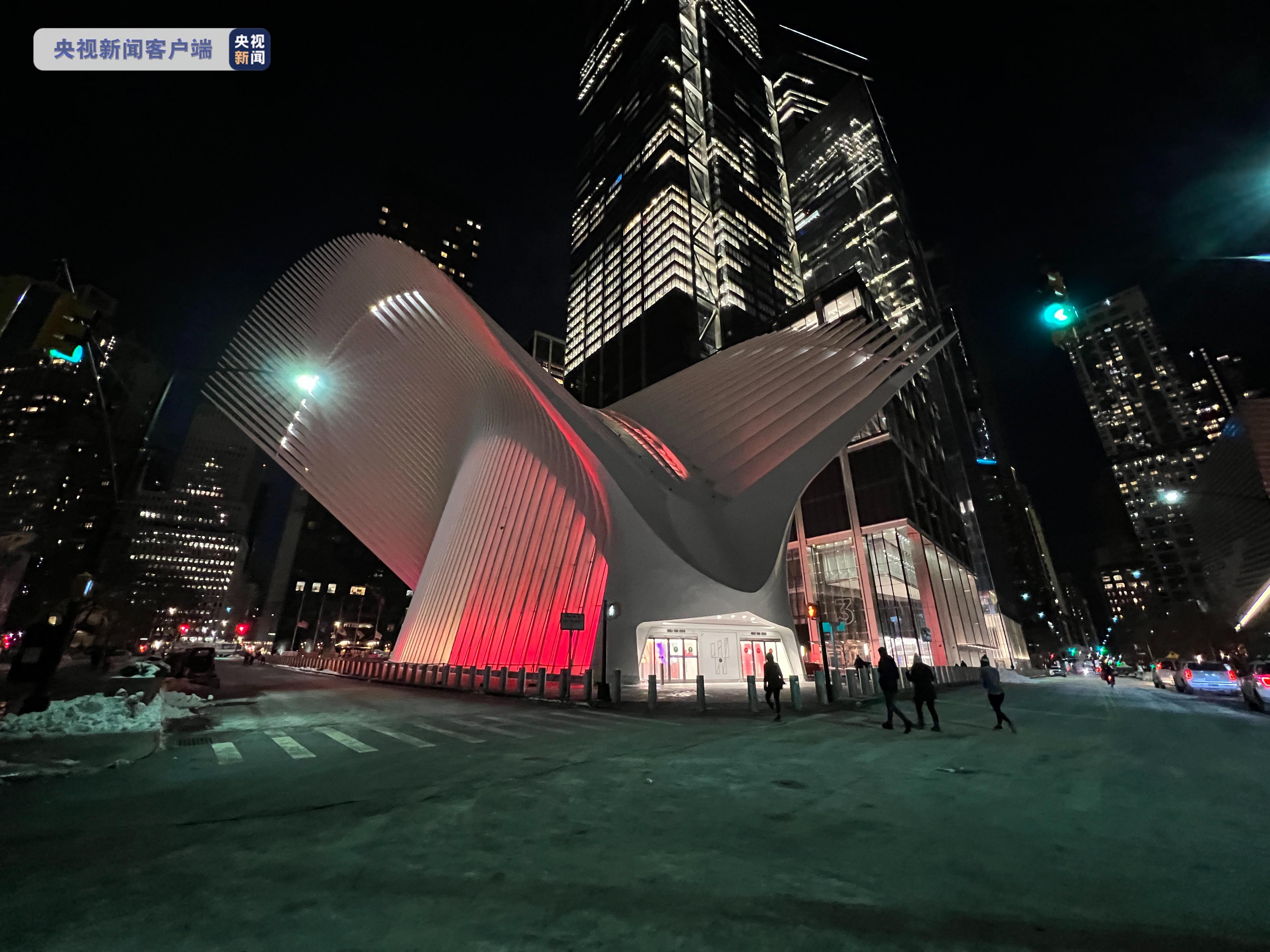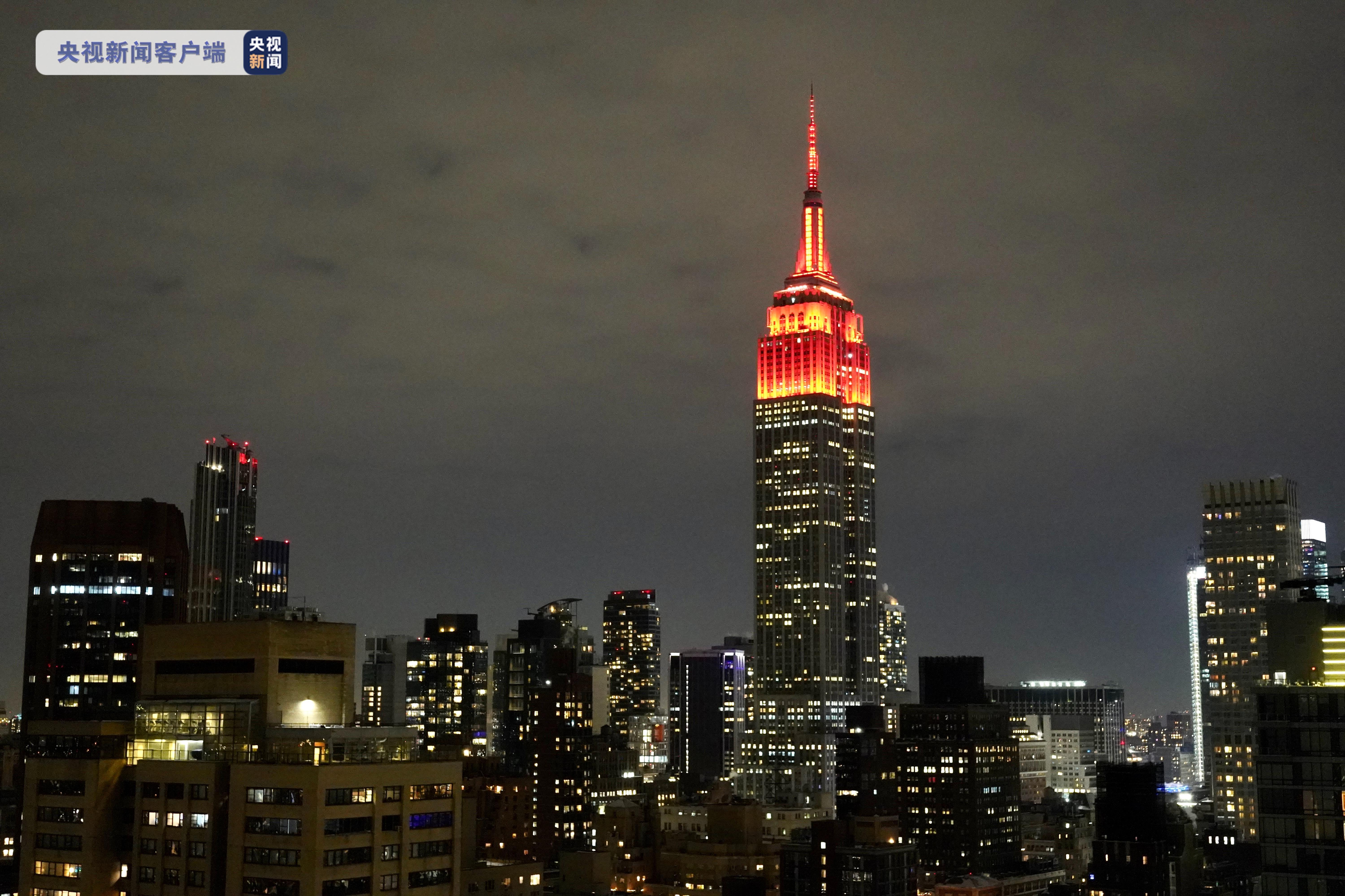 纽约多个地标建筑点亮“中国红”庆祝虎年春节