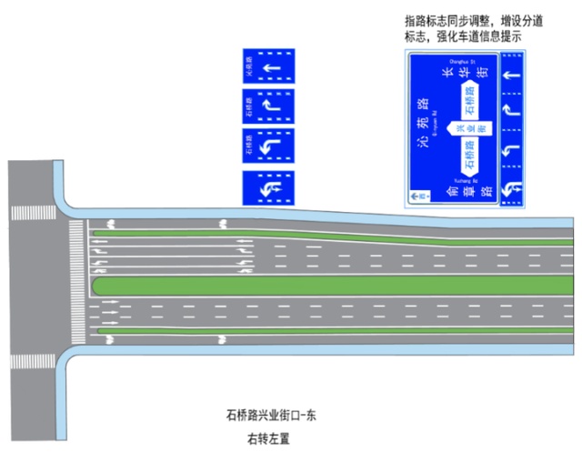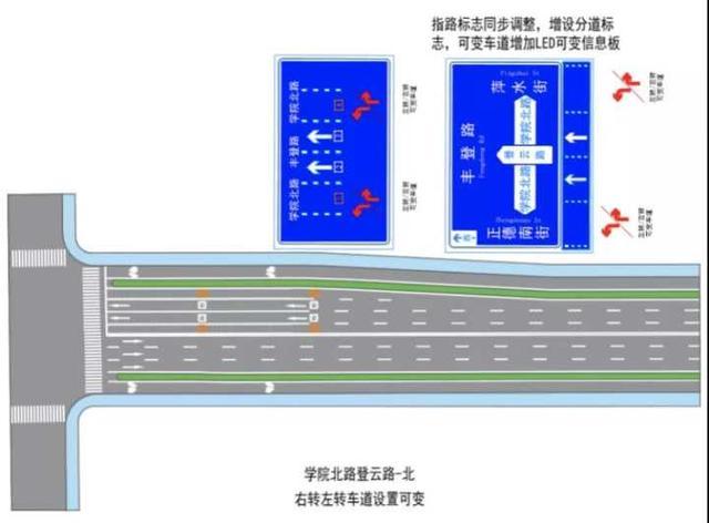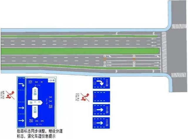 “右转”反置法,进行路口优化,将右转车道靠道路中央。