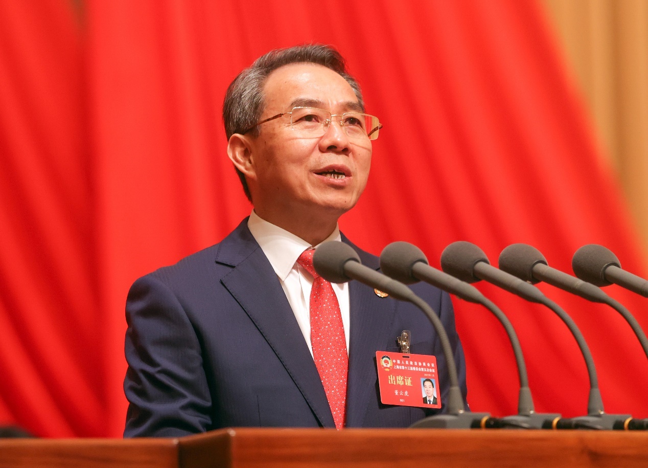 董云虎在上海市政协十三届五次会议开幕式上作工作报告。张海峰摄
