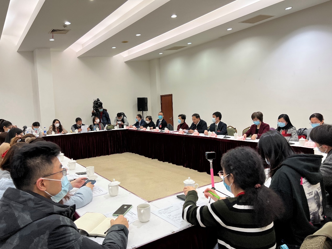 1月18日晚,2021年度优秀提案获奖者们与记者交流