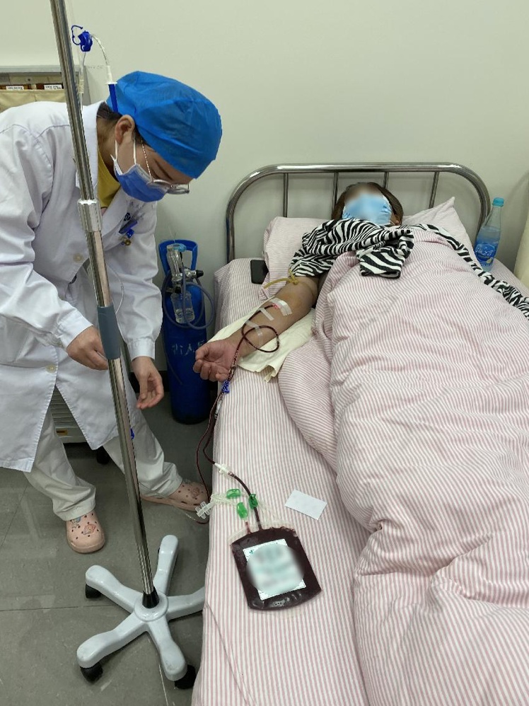 徐智杰医师对患者病史等信息进行详细了解,充分评估后发现患者适合三氧自体血回输治疗,在患者及家属讨论同意后,输血科团队开始对王奶奶进行三氧自体血回输治疗。在治疗过程中,患者及家属商量,又追加了两次治疗。几次治疗后,王奶奶头痛的症状得到了缓解。