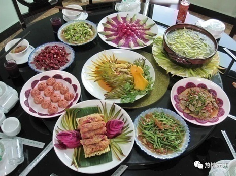 孔雀宴,云南十大主题名宴之一,采用来自大山天然无污染的当地食材,以五大民族的代表菜为主体,五大民族的味道为依托,呈现一桌色彩斑斓的民族菜。