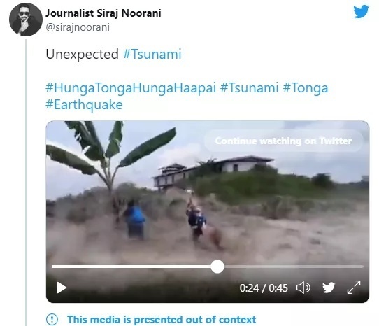 正当人们为汤加揪心时,一名认证为记者的网友,15日下午5时许在社交媒体上发布了一段“汤加海啸”的视频。