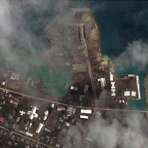卫星先给关注的人们吃了一颗定心丸——这次火山喷发并不在汤加人口聚集的主岛,而在旁边无人居住的小岛上,活火山在过去已有活跃的喷发活动。
