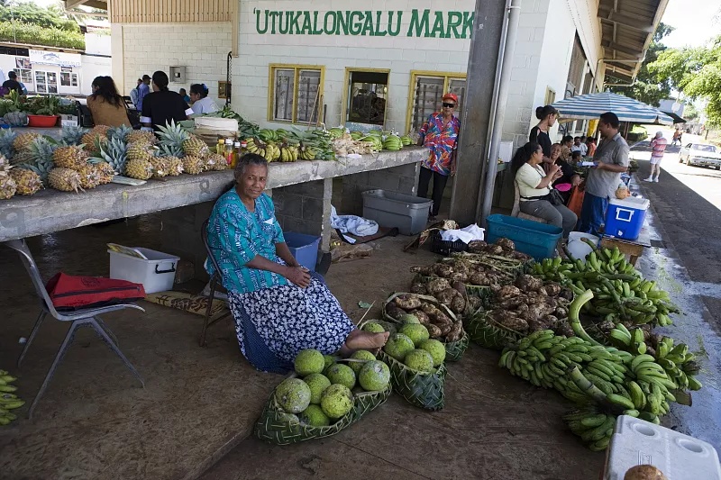 位于汤加瓦瓦乌岛的'Utukalongalu市场上出售当地水果