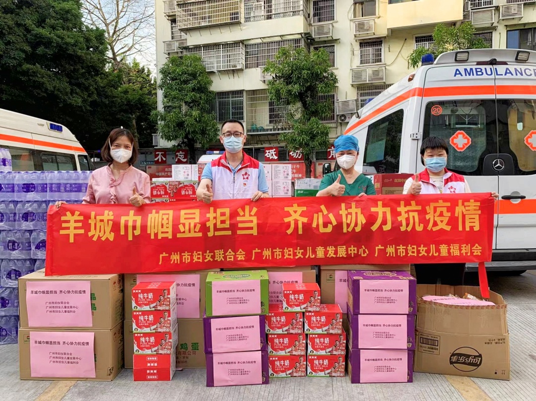 4月14日,白云区妇幼保健院工会妇委会发来抗疫求助:收到基层防疫单位和区妇联的抗疫求助,广州市妇联迅速回应,积极统筹,当天组织广州市妇女儿童发展中心数十名工作人员,以最快速度采购以及调配物资,包括牛奶130箱、鸡蛋130托,并且联动各界捐赠方马上配送了上百箱水、方便面等食物和饮料等,第一时间送达到了最急需物资的抗疫一线现场。