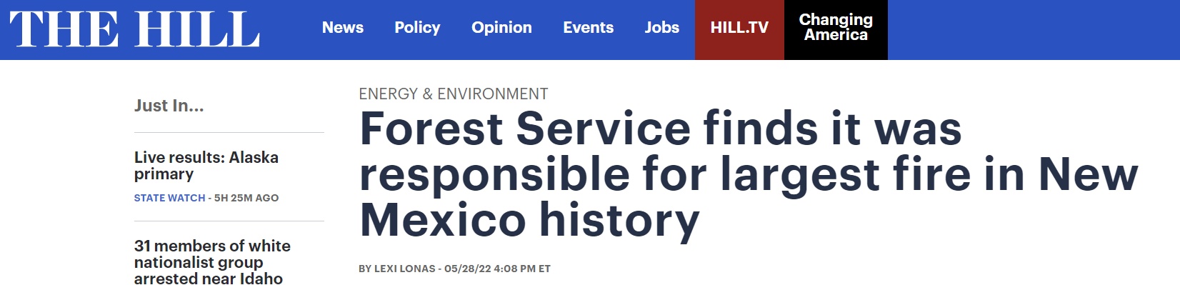 5月27日,美国林业局承认这两起山火均为林业局引燃。调查显示,美国林业局原本意在有控制地焚烧灌木及枯枝落叶,从而降低干旱季节的山火风险,达到育林、减少森林病虫害等预期效果。然而,事与愿违,林业局人工引火的做法非但没能降低山火概率,反而引燃了新墨西哥州历史上最肆虐的山火。