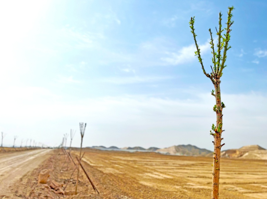 入夏时节,谷物新绿。近日,沿着宽阔平坦的砂化道路进入陈家井邓家沟高标准农田项目区,映入眼帘的是,成方成片的田土地绿意盎然,纵横交错的机耕道和灌溉管网整齐划一,一排排郁郁葱葱的行道树迎风而立,一台台大型机械开足马力播种,田间地头,种植队员和劳务工人们仍在紧张地施工—播种、筑埂、浇水、撒肥。翠绿色的玉米和燕麦秧苗为邓家沟披上了绿色的新装,一幅现代农业助推乡村振兴的全新图景正徐徐展开。