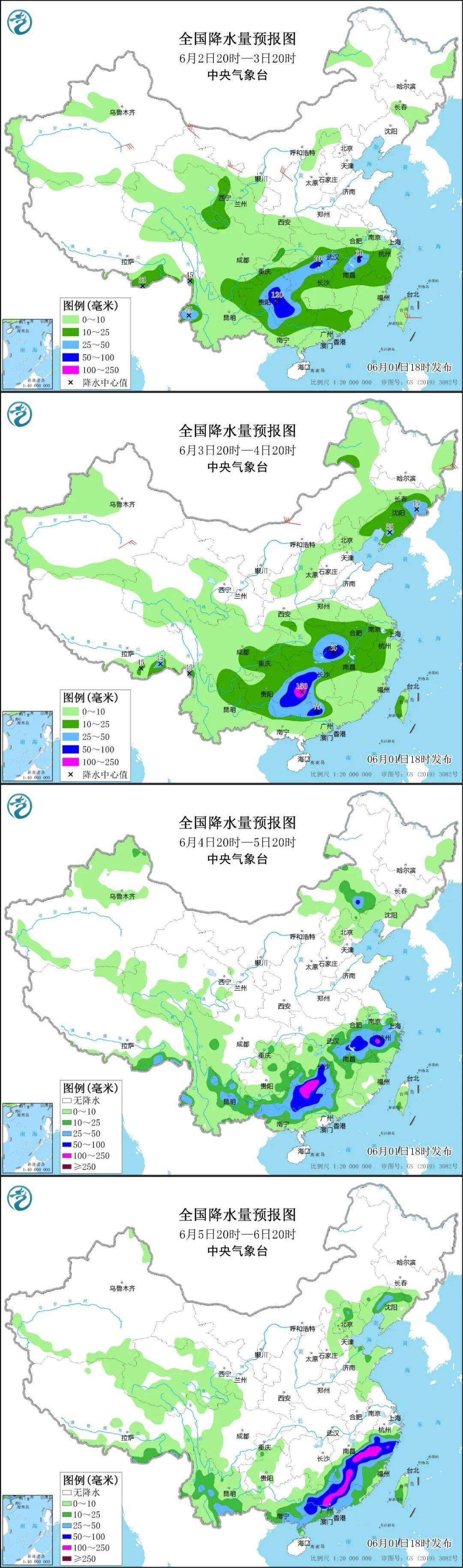 3日白天降水减弱,但紧接着3日夜间,开始又一轮强降雨登场。4—6日为主要降水时段,刚好覆盖端午节后两天。贵州及江南大部、华南等地,先后有大到暴雨部分地区有大暴雨,局地伴有短时强降水、雷暴大风或冰雹等强对流天气。