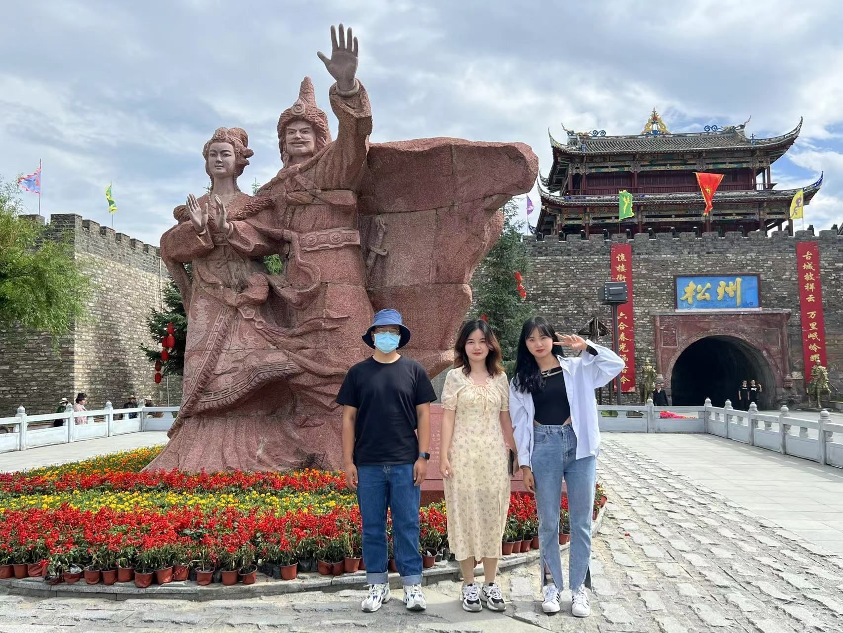 王晨(左一)和同学外出游玩。(本人供图)