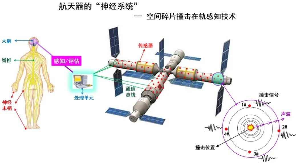 为了应对空间碎片威胁,航天学院庞宝君教授团队与北京空间飞行器总体设计部,联合开发了专门针对问天实验舱结构特点的空间碎片撞击感知技术,并将其应用于问天实验舱结构健康监测子系统的空间碎片撞击监测模块。该技术能够对空间碎片撞击事件进行实时感知、判别并定位,为航天员和地面控制人员及时采取应对措施提供依据,保护空间站和航天员安全。