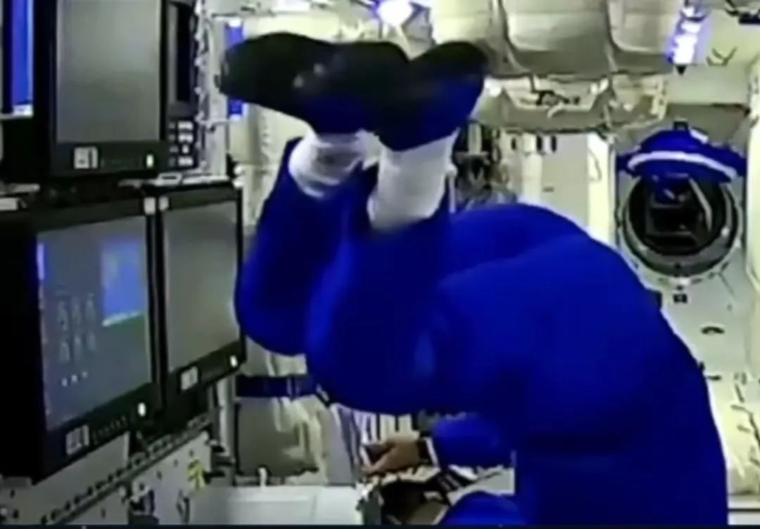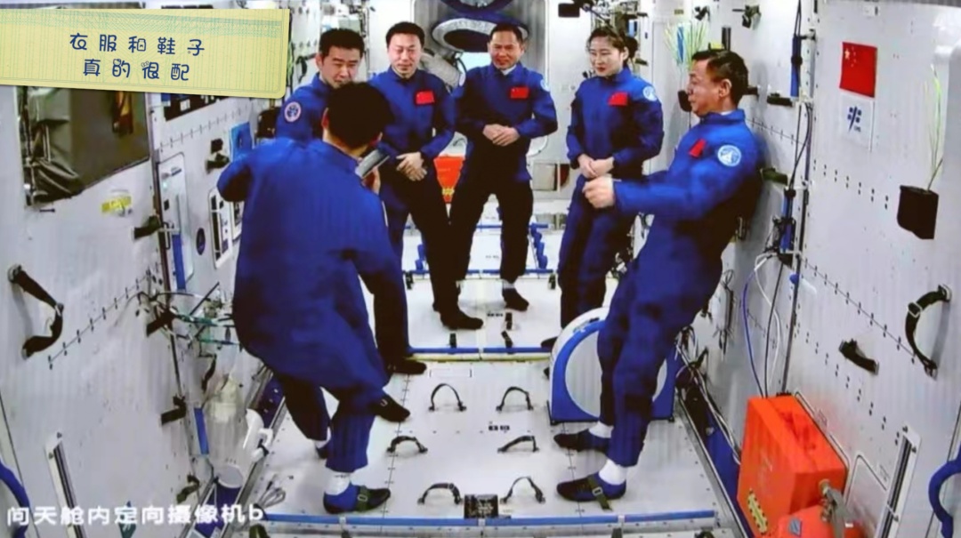 航天员穿着企鹅服及企鹅服鞋开展工作