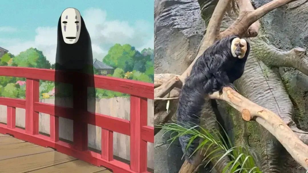有游客最近在南京红山森林动物园游览时看到了一只长相奇特的猴子,觉得它长得很像日本漫画家宫崎骏动画电影《千与千寻》里的无脸男,便随手拍了下来。